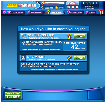 Design an easy to use Quiz Creator feature for the casual movie trivia player who wants to challenge their friends but doesn’t have the time to create questions from scratch.