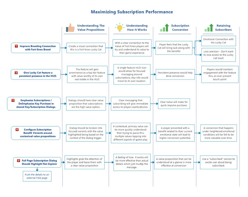 The subscription service performance metrics for the subscription service had lower performance metrics than a similar feature built into one of our other products. While some of this was anticipated due to the need to rush the feature production to make the launch date, user testing near the product launch gave us some additional insight into ways to improve the feature.